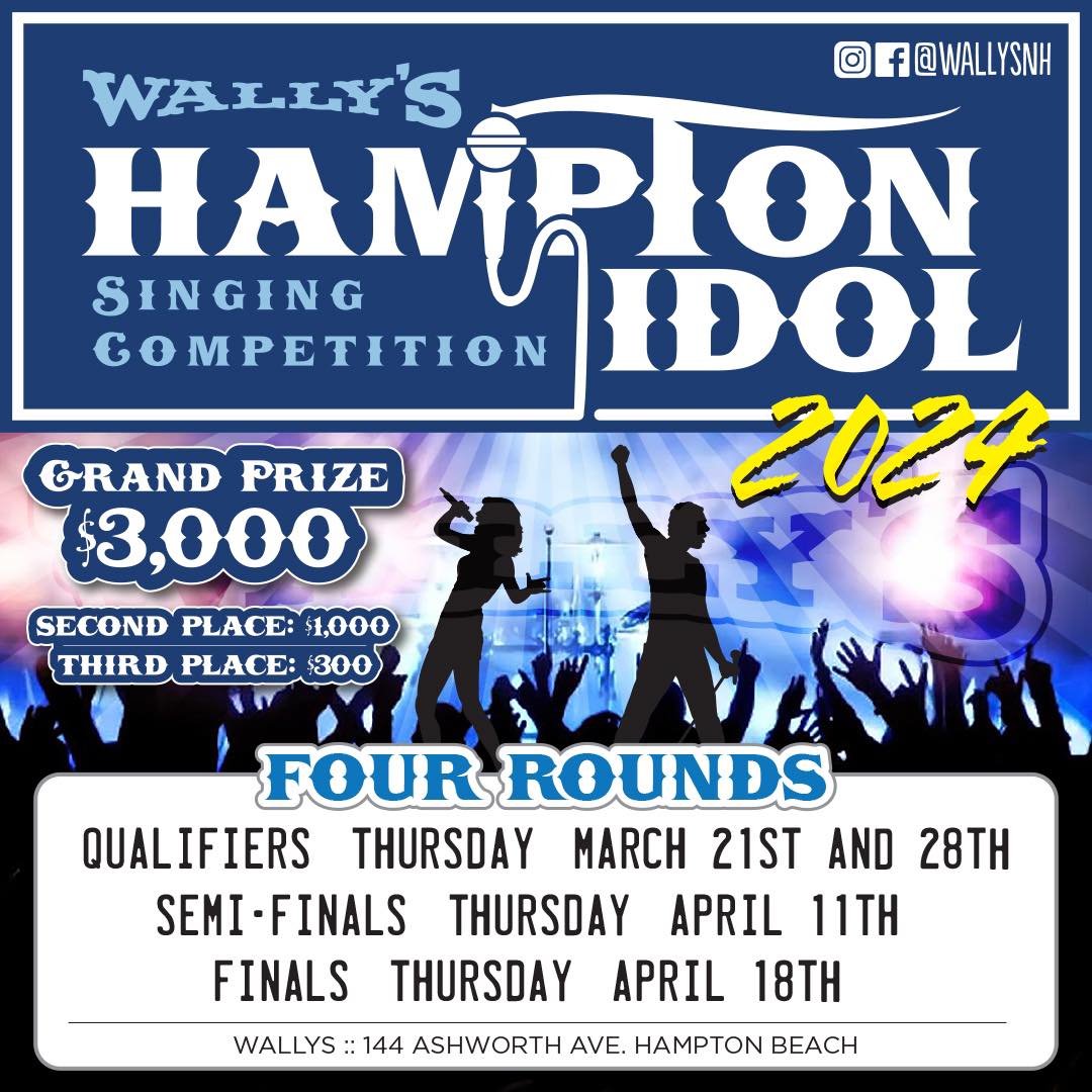 Events » Wally's Idol Thursday, Mar 21 2024 - Venue Wally's Hampton, New Hampshire Event Details Artists/Info Map Images Artists and Info Map View Larger Map Images Claim