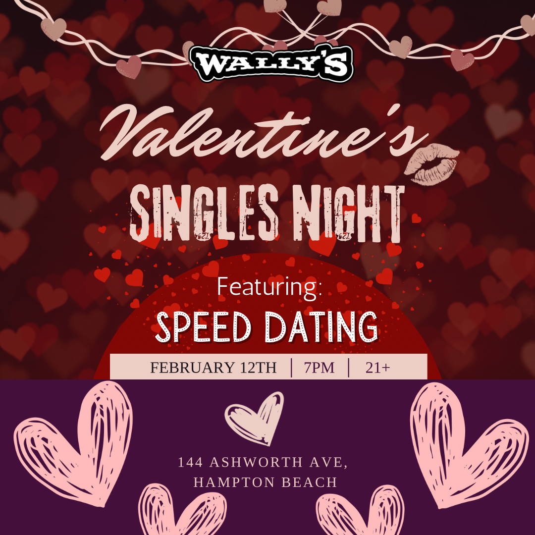 Events » Singles Night: Ft Speed Dating Thursday, Feb 12 2026 - Venue Wally's Hampton, New Hampshire Event Details Artists/Info Map Images Artists and Info Map View Larger Map Images Claim